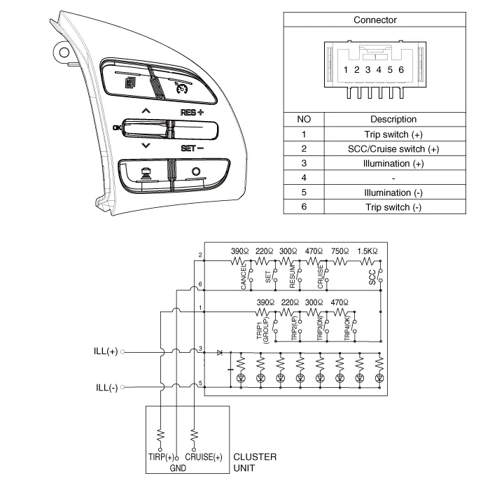 Components1. Left Remote Control Switch (Audio + Hands free)2. Right Remote Control Switch(Cruise+Trip Computer)