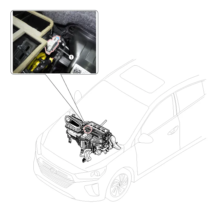 Inspection1.Turn the ignition switch OFF.2.Disconnect the mode control actuator connector.3.Verify that the mode control actuator operates to the defrost mode when connecting 12V to terminal 3 and grounding terminal 4.