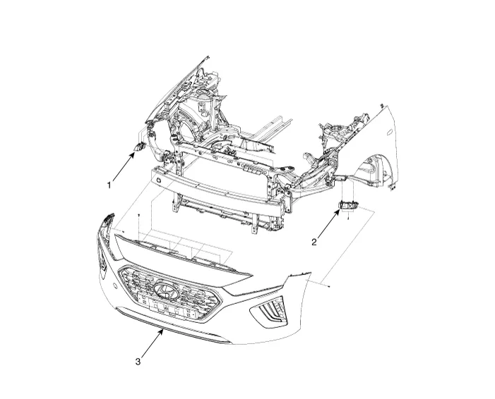 | 1. Front bumper side bracket [LH] 2. Front bumper side bracket [RH] | 3. Front bumper cover |