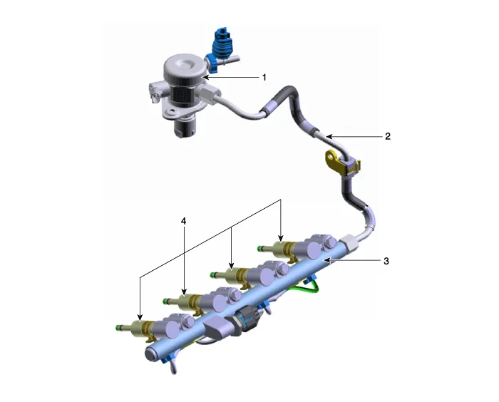 | 1. High pressure fuel pump 2. High pressure fuel pipe | 3. Delivery pipe 4. Injector |