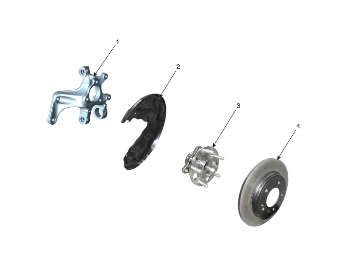 | 1. Rear axle 2. Dust cover | 3. Rear hub bearing 4. Rear brake disc |