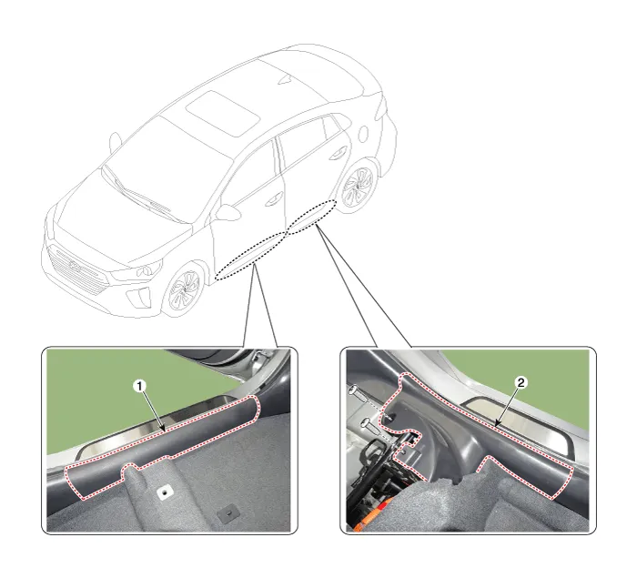 | 1. Front door scuff trim | 2. Rear door scuff trim |