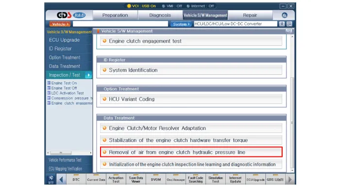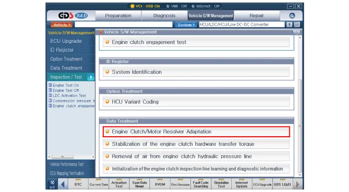 | 2. | After replacing the Engine clutch actuator, operate the followings in order using GDS equipment. | (1) | Engine clutch inspection line learning and diagnostic information.