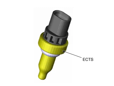 Engine Coolant Temperature Sensor (ECTS) is located in the engine coolant passage of the cylinder head for detecting the engine coolant temperature. The ECTS uses a thermistor that changes resistance with the temperature.