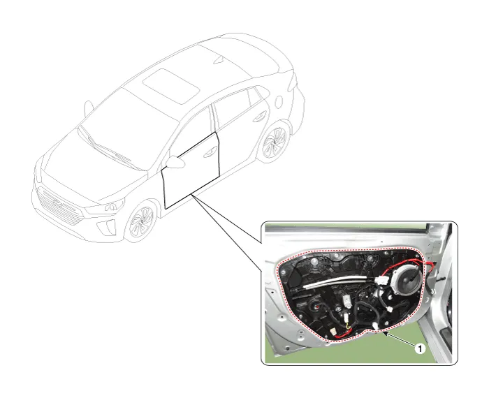 Replacement1.Remove the front door window glass.(Refer to Front Door - "Front Door Window Glass")2.Remove the front door outside handle.(Refer to Front Door - "Front Door Outside Module")3.