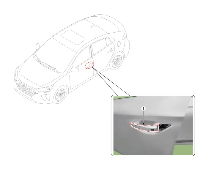 Replacement1.Remove the front door window glass.(Refer to Front Door - "Front Door Window Glass")2.Remove the front door outside handle.(Refer to Front Door - "Front Door Outside Module")3.