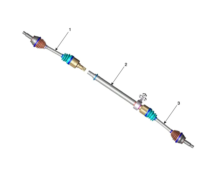 | 1. Driveshaft (LH) 2. Inner shaft bearing bracket | 3. Driveshaft (RH) |