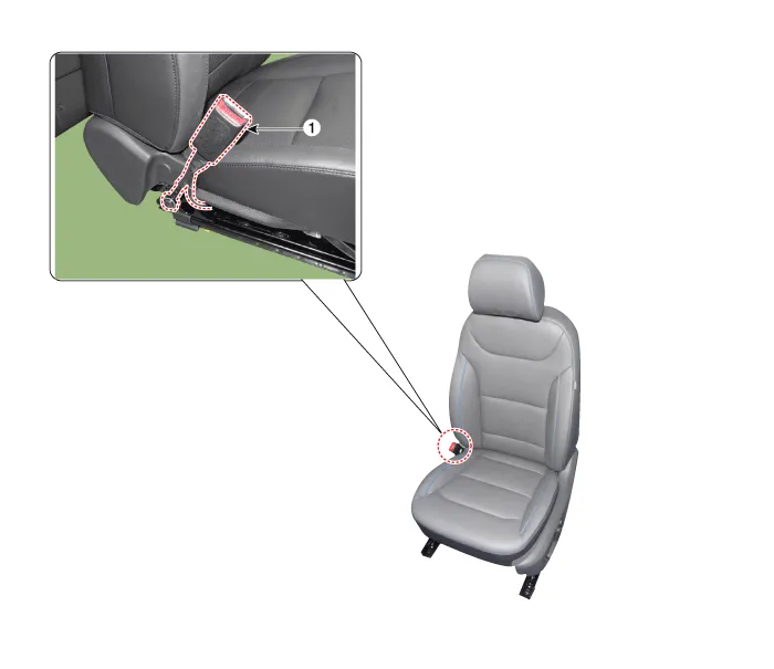 Replacement1.Remove the front seat belt upper anchor.(Refer to Front Seat Belt - "Front Seat Belt Pretensioner")2.After loosening the mounting bolts, remove the height adjust (A).