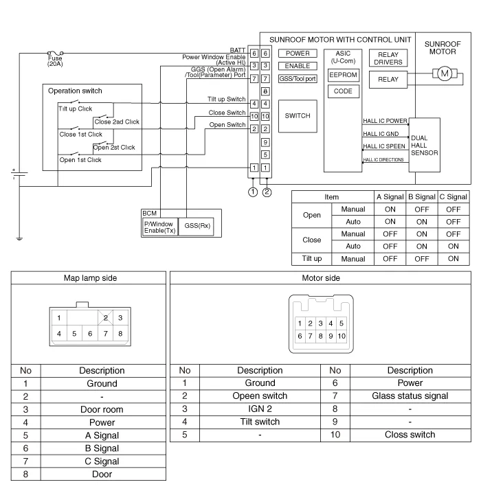 Component Location1. Sunroof2. Sunroof switch3. Sunroof motor & controller