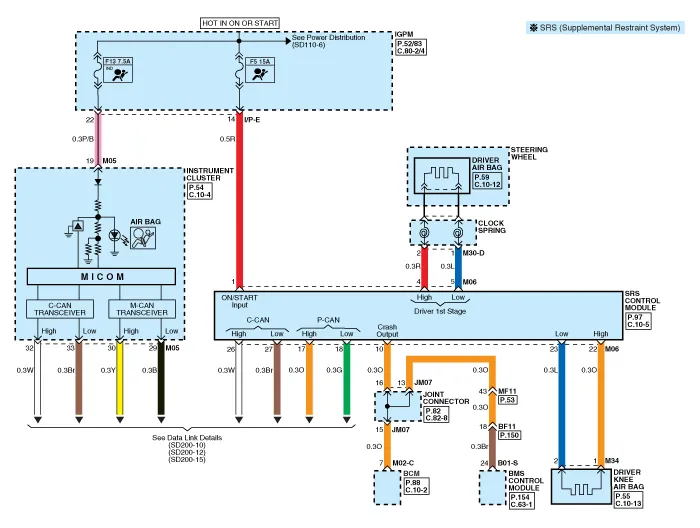 Description• Supplemental Restraint System Control Module (SRSCM) determines whether and when to deploy air bag module, seat belt pretensioner (BPT) and emergency fastenig device (EFD).