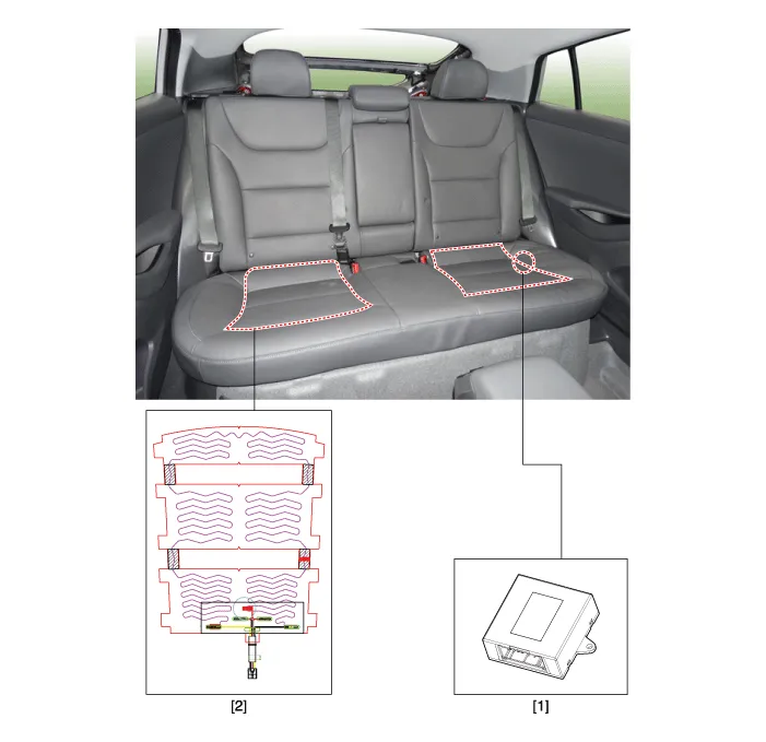 | 1. Rear seat heater unit (Passenger seat only) | 2. Seat cushion (Heater) |