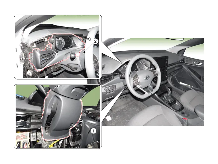 | 1. Steering column shroud lower panel | 2. Steering column shroud upper panel |