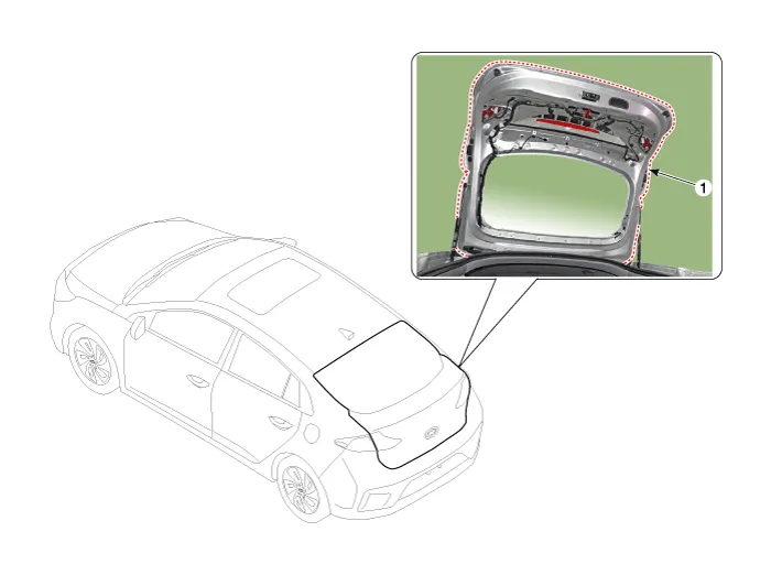 Adjustment1.Place the car on a flat surface and check whether the body and trunk lid are well-aligned. 2.After loosening the tailgate hinge (A) mounting bolt, adjust the tailgate by moving it up and down or from side to side.