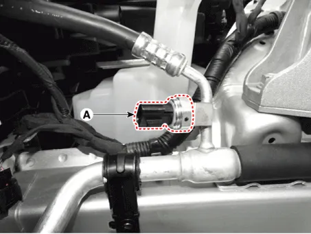 | 3. | Disconnect the A/C pressure transducer connector (A).