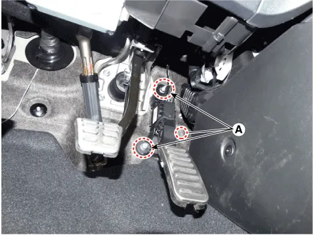 | 3. | Remove the installation nut (A), and then remove the accelerator pedal module.