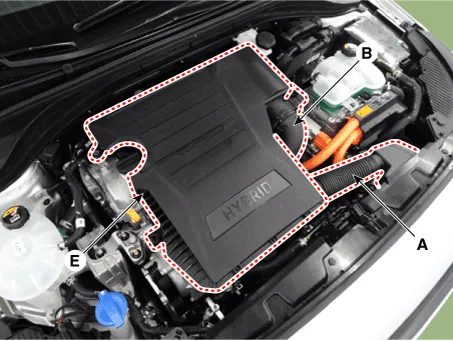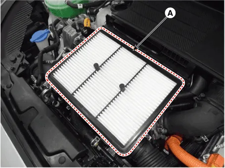 | 1. | Remove the clamp and open the air cleaner cover (A).