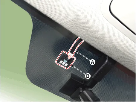 | 3. | Disconnect the connector (A) and then remove the auto defogging sensor (B).