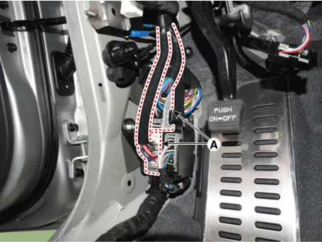 | 23. | Disconnect the multi box connectors (A). [Driver's side]