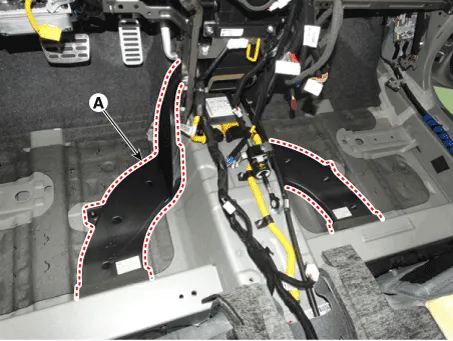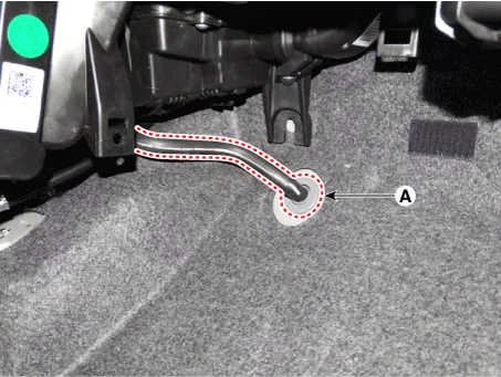 | 19. | Separate the floor carpet (A) to obtain space for removing the rear heating duct.