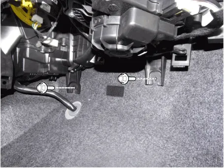 | 29. | Loosen the heater & blower unit mounting bolt (A).