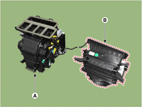 | 31. | Separate the blower unit (B) from the heater unit (A) after loosening the screws.