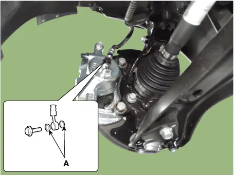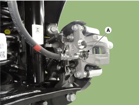 | 6. | Disconnect the brake hose from the brake caliper by loosening the bolt (A).