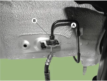 | 5. | Disconnect the brake tube by loosening the tube flare nut (B).