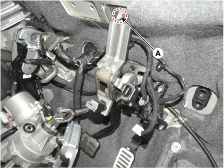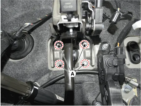 | 5. | Remove the brake pedal member mounting nut (A).