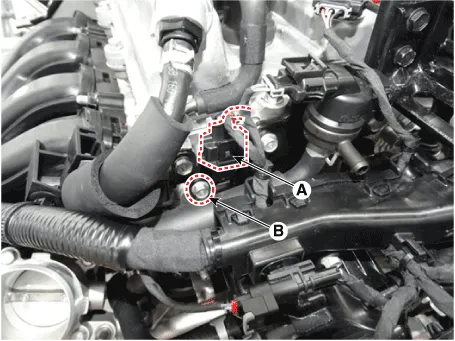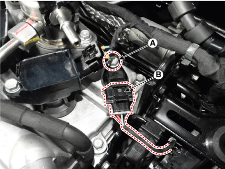 | 4. | Remove the installation bolt (B), and then remove the sensor.