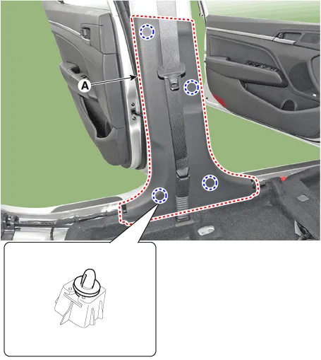 | 5. | Using a screwdriver or remover, remove the center pillar lower trim (A).
