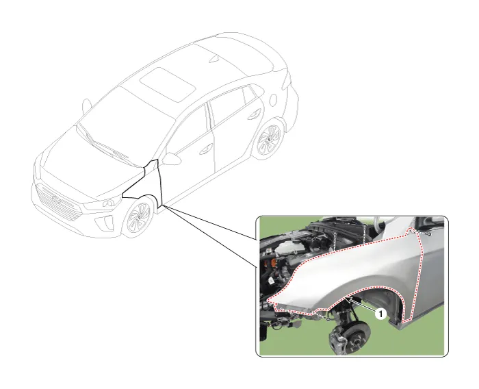 Replacement • When removing the fender, wrap protective tape around a screwdriver or remover not to damage components• Put on gloves to prevent hand injuries • When removing the clips, use a clip remover.