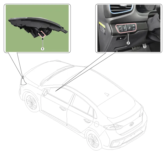 | 1. Head lamp leveling actuator | 2. Head lamp leveling switch |