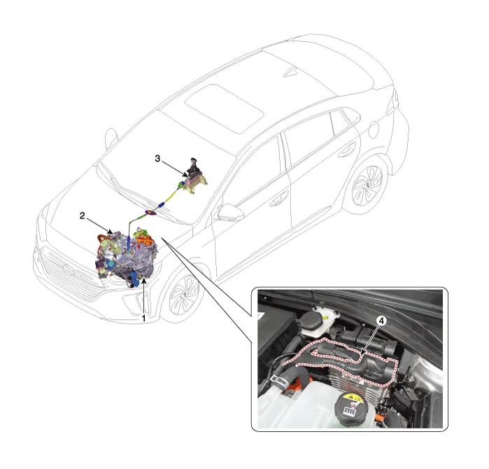 | 1. Dual Clutch Transmission (DCT) Assembly 2. Hybrid Motor Assembly | 3. Shift Lever 4. DCT Control Module (TCM) |