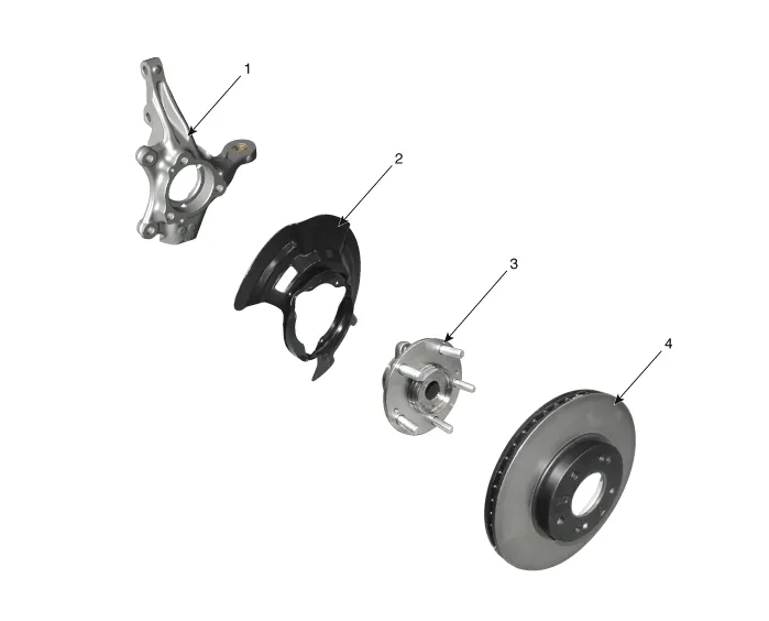 | 1. Knuckle 2. Dust cover | 3. Hub bearing 4. Brake disc |
