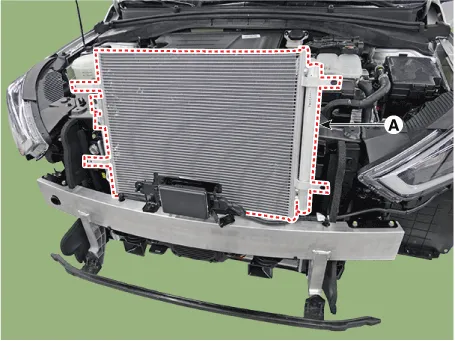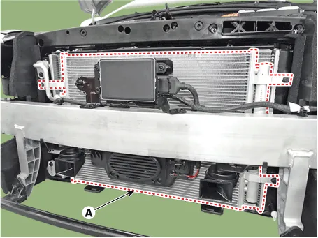 | 5. | After loosening the mounting bolts, remove the condenser (A).