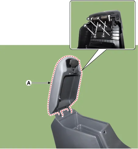 | 3. | Loosen the mounting screws and remove the console armrest (A).