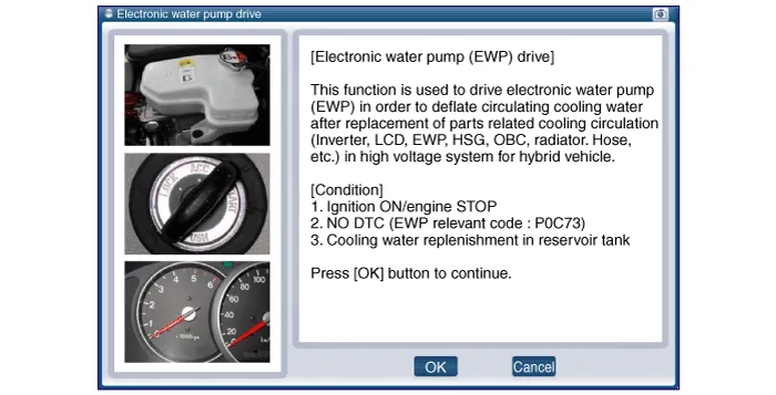 | 7. | Operate the electric water pump (EWP) using the GDS in the IG ON state.