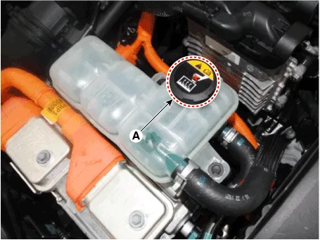 | 1. | Remove the reservoir cap (A) to drain the coolant quickly.