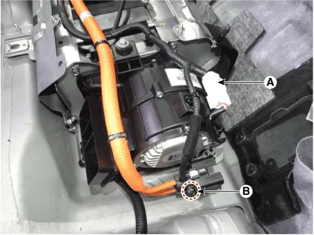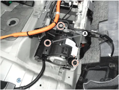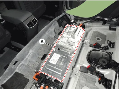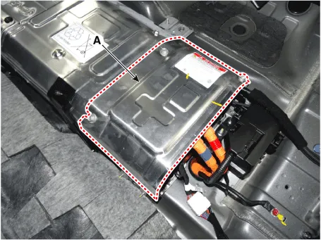 | 5. | Remove the high voltage battery rear cover (A) after loosening the mounting bolts and nuts.