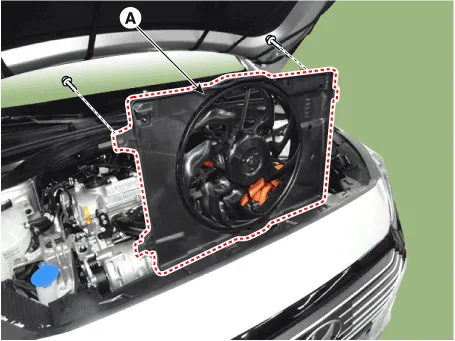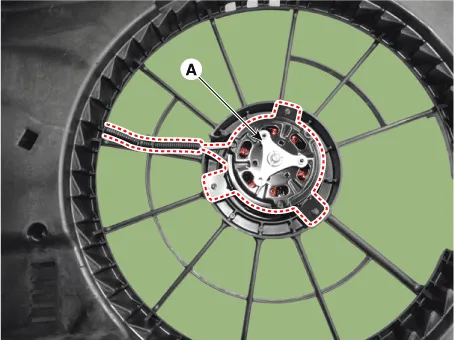 | 3. | Loosen the screws and then remove the fan motor (A) from the cooling fan shroud.