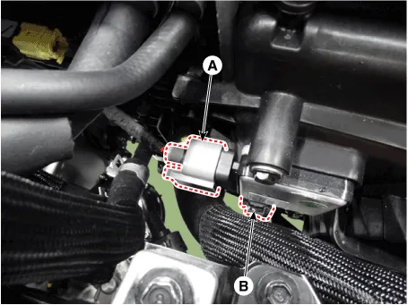 | 3. | Disconnect the hybrid starter generator (HSG) coolant hoses (A).