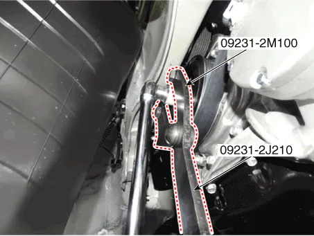 | 1. | Remove the passenger seat RH front tire. (Refer to Suspension System - "Wheel") |