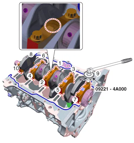 | 1. | Install the crankshaft main bearings.