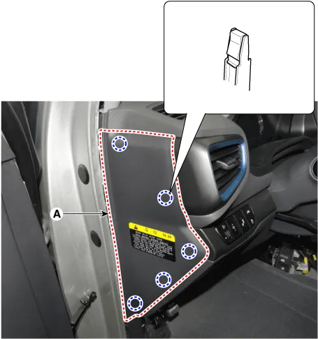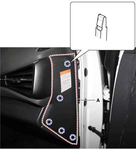| 1. | Using a remover and remove the crash pad side cover (A). [LH]