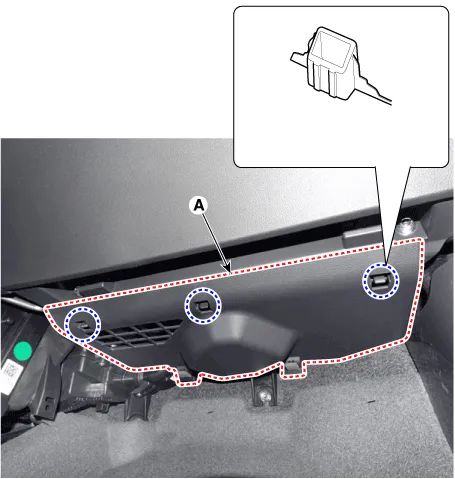 | 1. | Using a screwdriver or remover, remove the crash pad under cover [RH] (A).