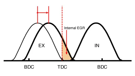 | (2) Part Load | Retard | * Increase of expansion work * Reduction of pumping loss * Reduction of HC | Retard | * Reduction of pumping loss |