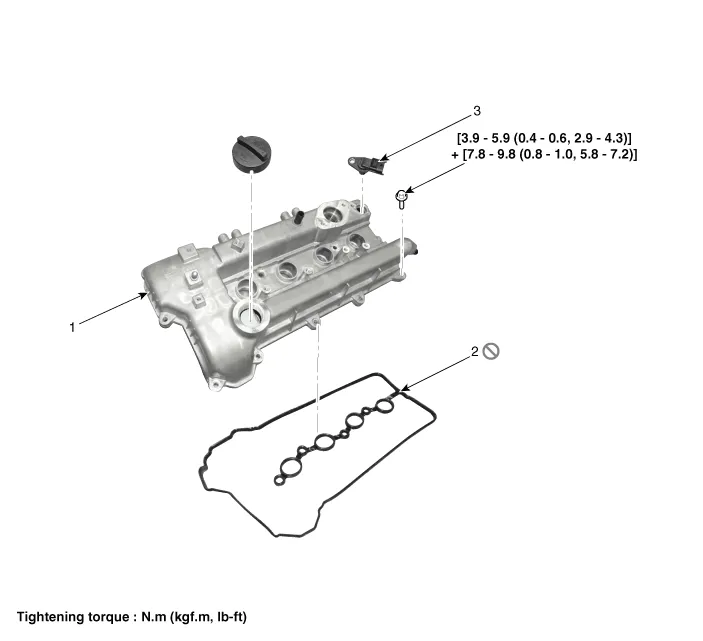 | 1. Cylinder head cover 2. Cylider head cover gasket | 3. Camshaft position sensor |