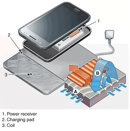 | 2. | Charging pad : electrical coils wound inside the plastic cover. |