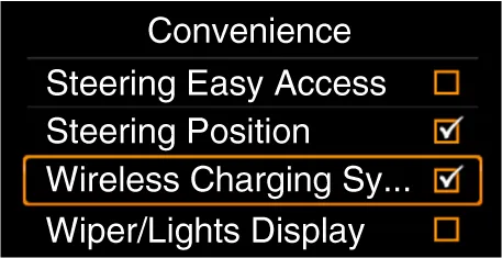 During ACC or IG ON, battery voltage is supplied to the wireless power charger system to transmit an output of 5 W to mobile phone.