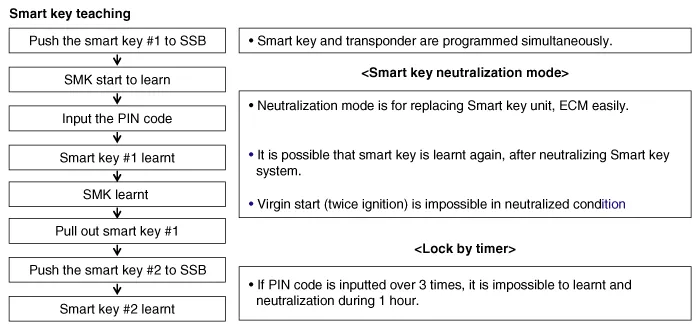 | – | SMK replacement: SMK is not learnt and SMART FOB are already learnt with same PIN code |